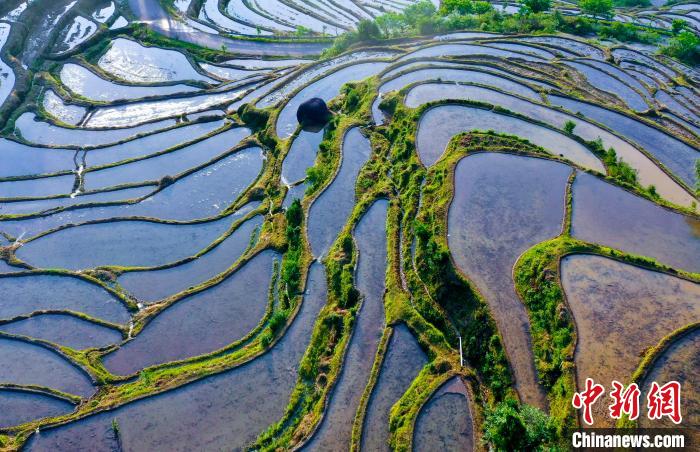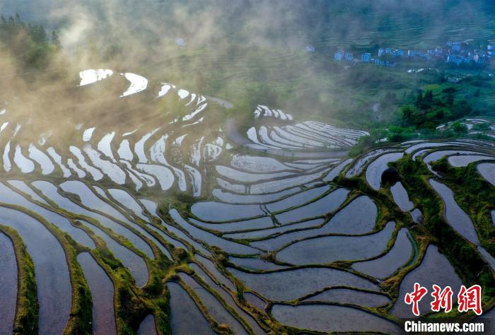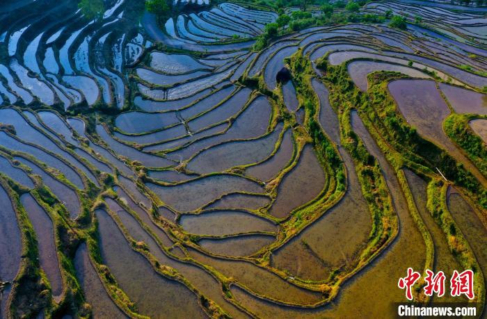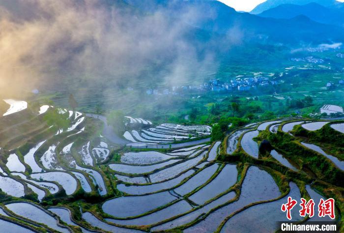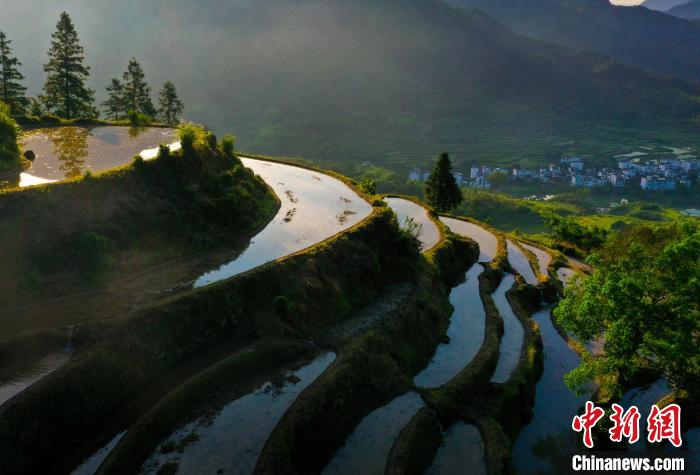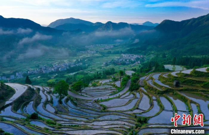 连日来,江西省婺源县江岭梯田逐步灌水,田里水满泥润,层层梯田绵亘蜿蜒,线条丰富,如诗如画。 程政 摄