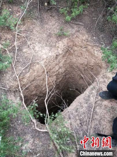 盗墓贼在田间打下的盗洞。邯郸警方供图