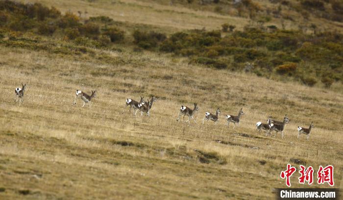 图为臀部呈白色桃心的藏原羚排队奔跑。 三江源国家公园森林公安局 供图