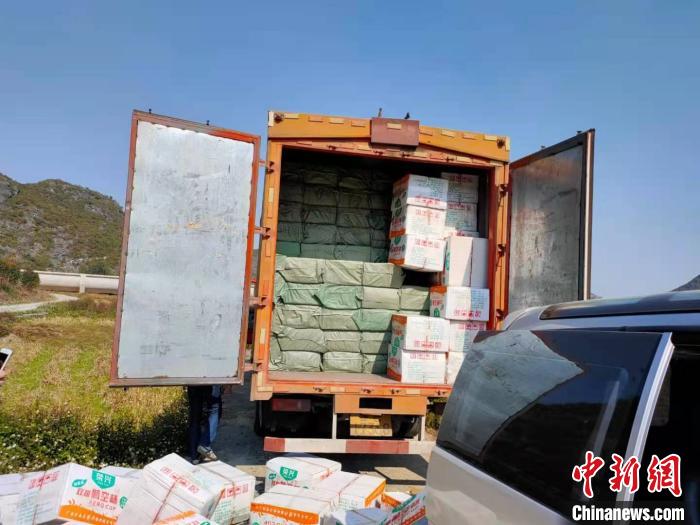被专案组截停的大货车,车上装有共计38160条走私卷烟。来宾市公安局供图