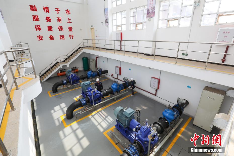4月13日,工作人员在福建晋金供水有限公司主厂房水泵室检查水泵运行情况。 赖进财 摄