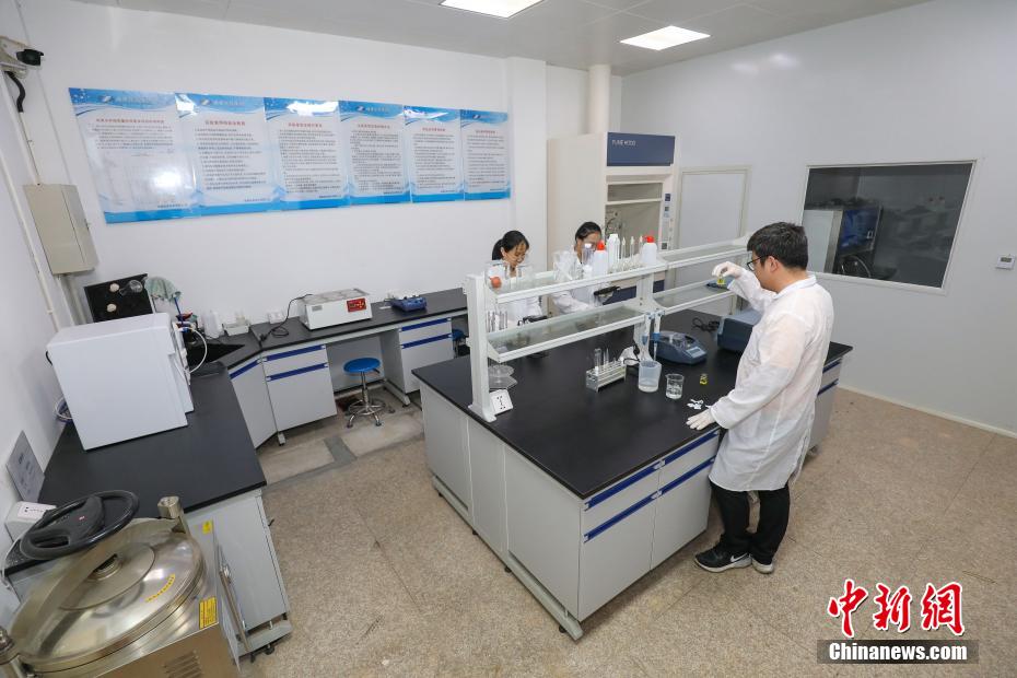 4月13日,工作人员在福建晋金供水有限公司水质实验室检测当日水样。 赖进财 摄