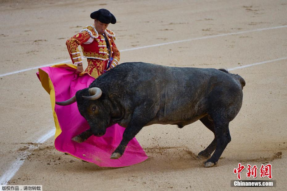 当地时间6月26日,西班牙首都马德里,西班牙最著名的斗牛场拉斯班塔斯斗牛场举行斗牛比赛,民众前来现场观看。
