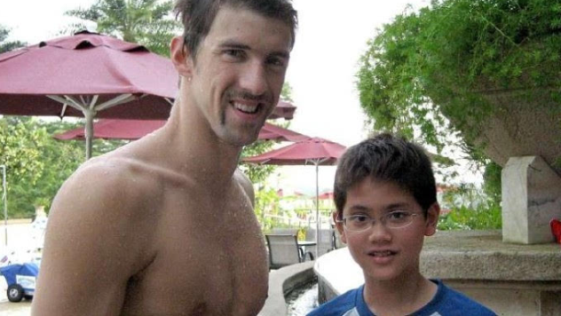曾和偶像菲尔普斯拍过一张合影,
