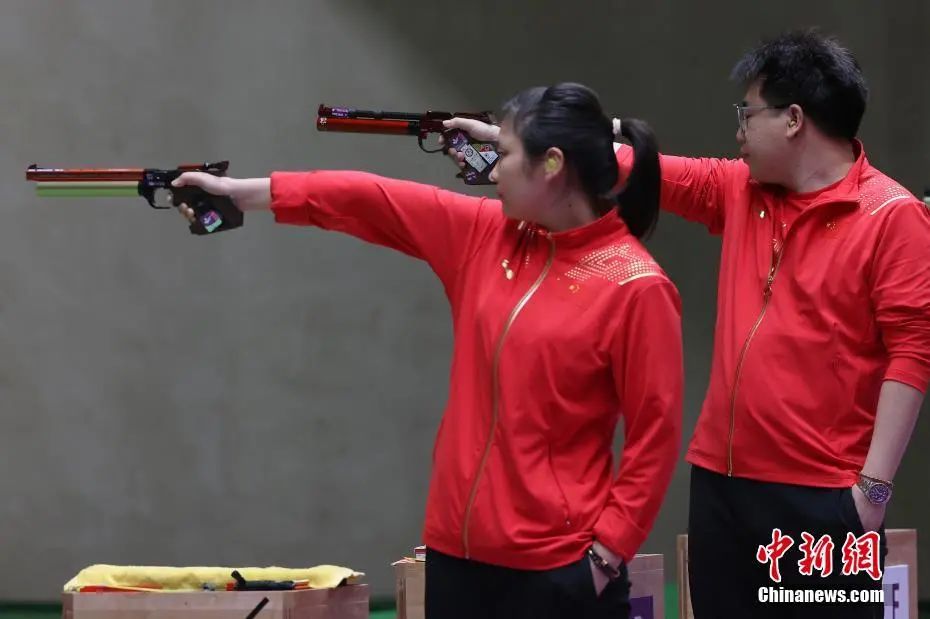 东京奥运会10米气手枪混合团体金牌战中,