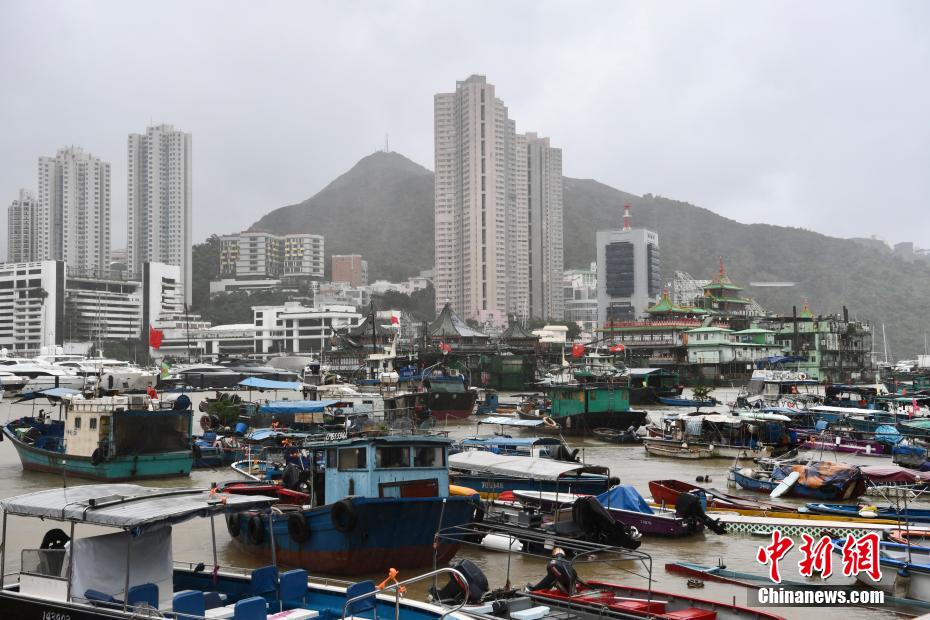 大批渔船停泊于香港仔避风塘避风。李志华 摄