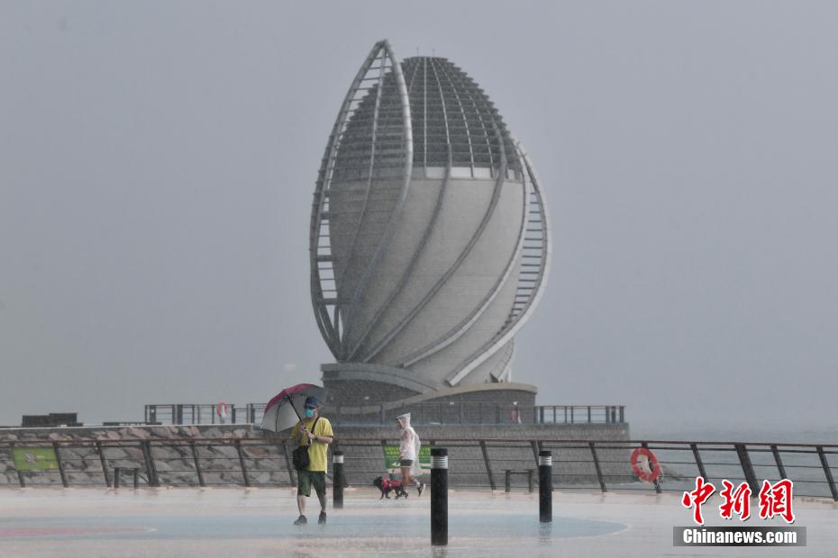 八号东南烈风或暴风信号生效,市民于炮台山出行。 李志华 摄