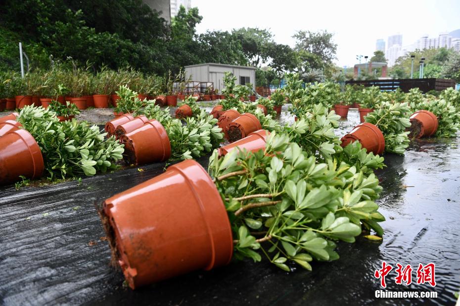 香港仔避风塘有盆栽被吹倒。李志华 摄
