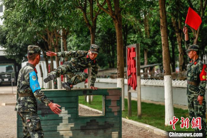 10月28日到29日,武警广西总队崇左支队军人运动会暨创破纪录比武竞赛火热开赛。来自该支队基层分队100余名官兵围绕100米、400米、400米障碍、3000米、实用攀登、实弹射击、五公里武装越野等10余项基础体能和实用技能课目展开激烈角逐,全面检验和提升官兵综合军事素质,推动部队军事训练水平提升,为多样化任务提供能力支撑。 图为400米障碍竞赛中,参赛官兵飞跃矮墙。 杨瑞 摄