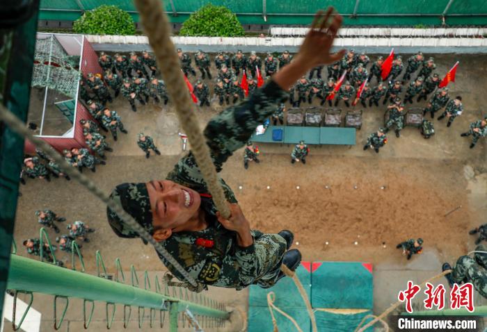图为参赛官兵正在进行18米抓绳上。 韦胜 摄