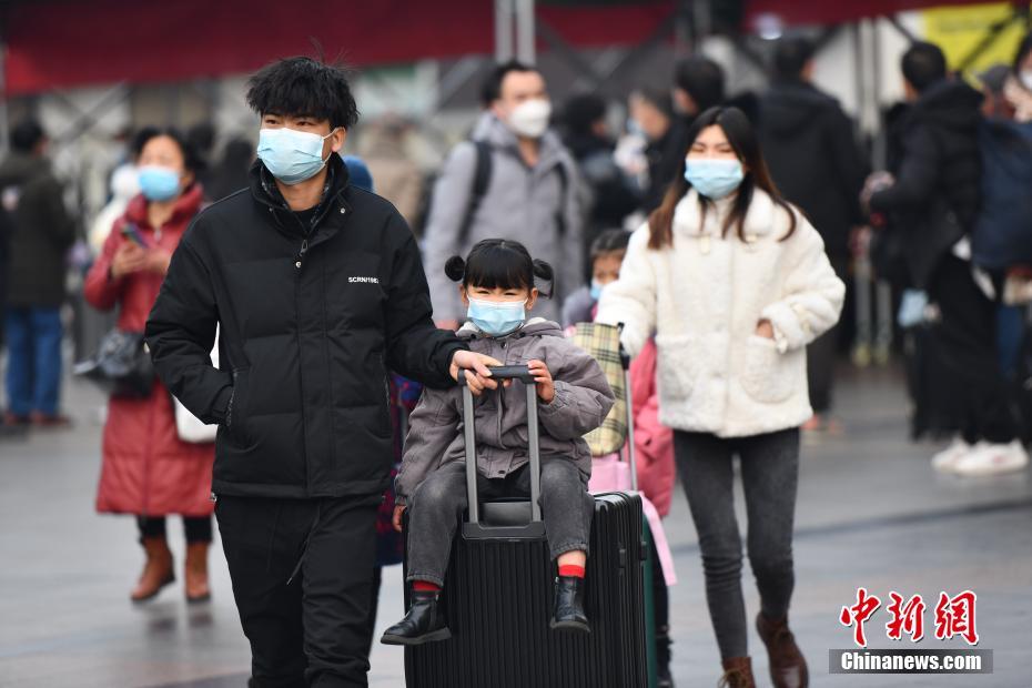 1月17日,旅客在成都火车北站出行。当日,2022年春运拉开序幕,2月25日结束,共40天。 中新社记者 张浪 摄