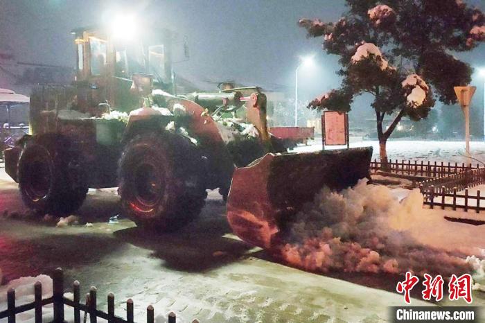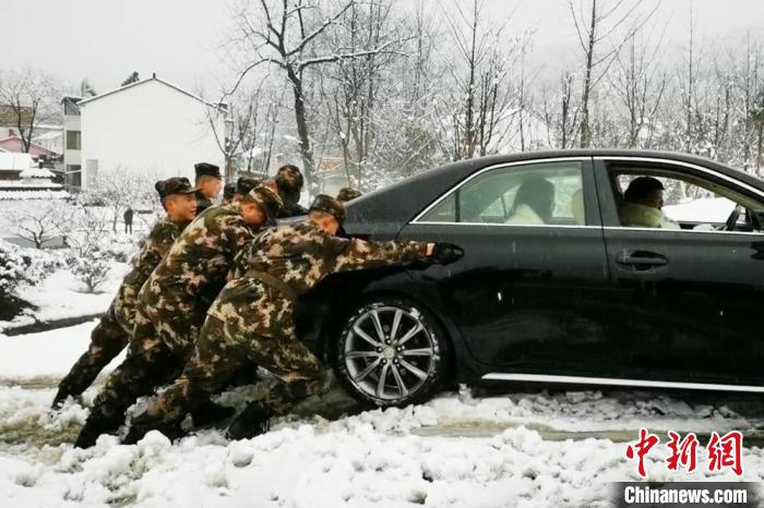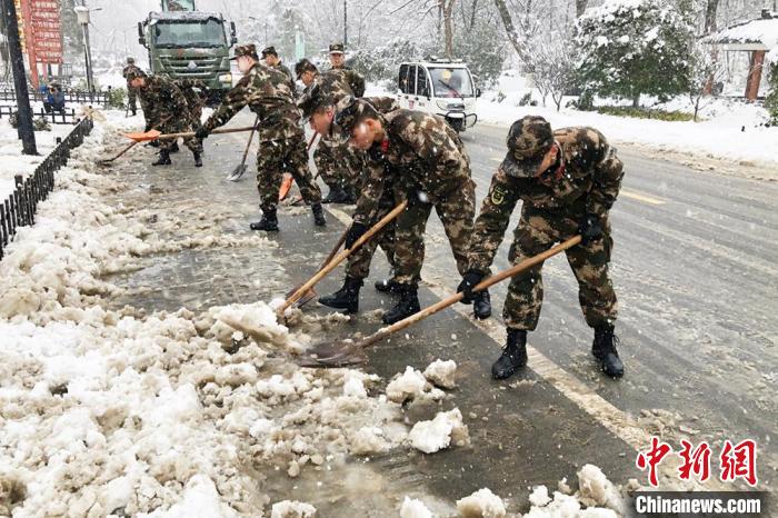 江苏宜兴部分地区积雪化冰 武警官兵出击除雪保畅通
