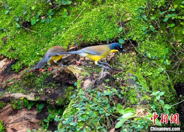 江西婺源县迎来数十只蓝冠噪鹛栖息繁育