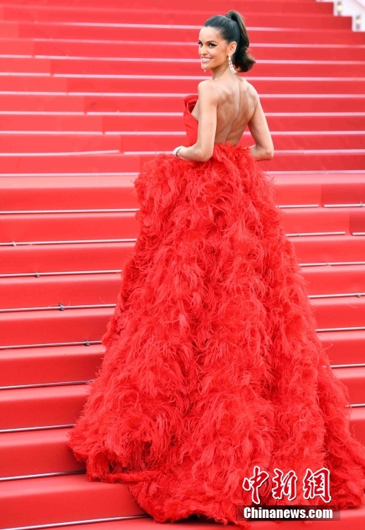 当地时间5月24日晚,模特伊莎贝尔·歌勒亮相戛纳电影节75周年庆典之夜红毯。 中新社记者 李洋 摄