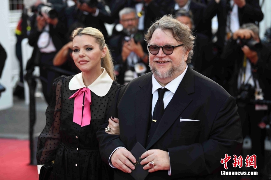 当地时间5月24日晚,导演吉尔莫·德尔·托罗携夫人亮相戛纳电影节75周年庆典之夜红毯。 中新社记者 李洋 摄