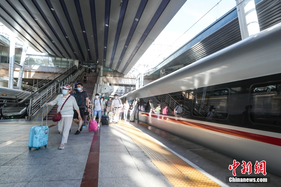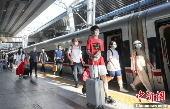 7月18日,乘坐通勤高铁列车的乘客抵达北京西站。当日起,针对涿州地区早高峰进京通勤人员需求,涿州东--北京西间加开1对“京涿通勤高铁”,首班始发车G6702次,涿州东6:23开,北京西6:47到,运行24分钟。末班终到车G6743次:北京西22:00开,涿州东22:25到,运行25分钟。 中新社记者 贾天勇 摄