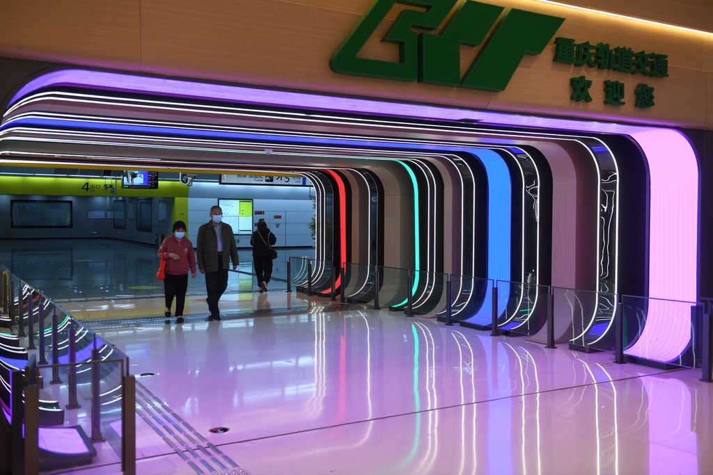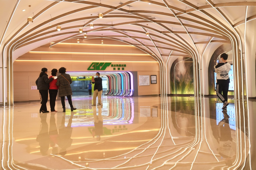 重庆一地铁站犹如时空隧道 吸引市民打卡