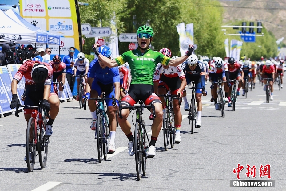 2021年7月18日,第二十届环青海湖国际公路自行车赛在青海省海西蒙古族藏族自治州德令哈市收官。青海天佑德车队选手李自森获得冲刺王绿衫。中新社记者 马铭言 摄