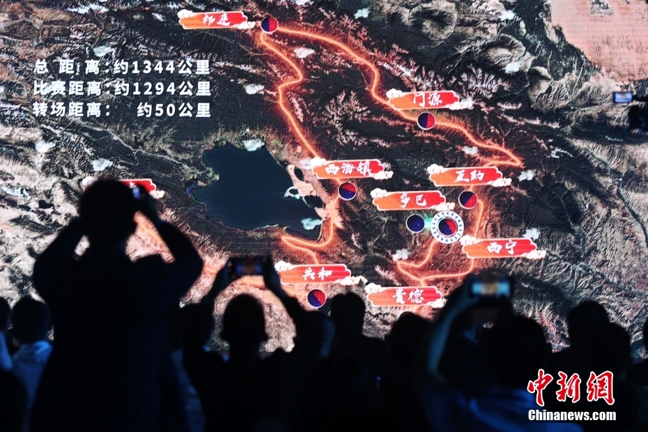 5月24日,2023第二十二届环青海湖国际公路自行车赛新闻发布会在北京举行。据发布会介绍,本届赛事将于7月8日在青海省西宁市举办开幕式,这项能够览尽湖光山色的自行车赛事,又要来啦!图为2023年5月24日,2023第二十二届环青海湖国际公路自行车赛新闻发布会在北京举行,赛事线路在发布会上发布。(图片来源:中新图片)中新社记者 蒋启明 摄