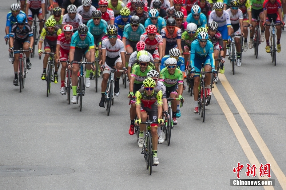 环湖赛历经二十一载风雨兼程,形成了以职业赛事为引擎,以各项衍生赛事为拓展,以产业发展和文化传播为两翼,以全民健身、大众参与为支撑的发展格局。赛事运行日益标准化、专业化、规范化,创造了良好的参赛环境和参赛体验,提供一流的竞赛场地和赛事服务,充分激发运动员挑战极限、突破自我的良好竞技状态。图为2016年7月17日,第十五届环青海湖国际公路自行车赛,车队通过西宁五四大街。中新社记者 崔楠 摄