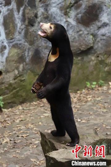 8月4日杭州动物园内站着的马来熊。 (资料图)