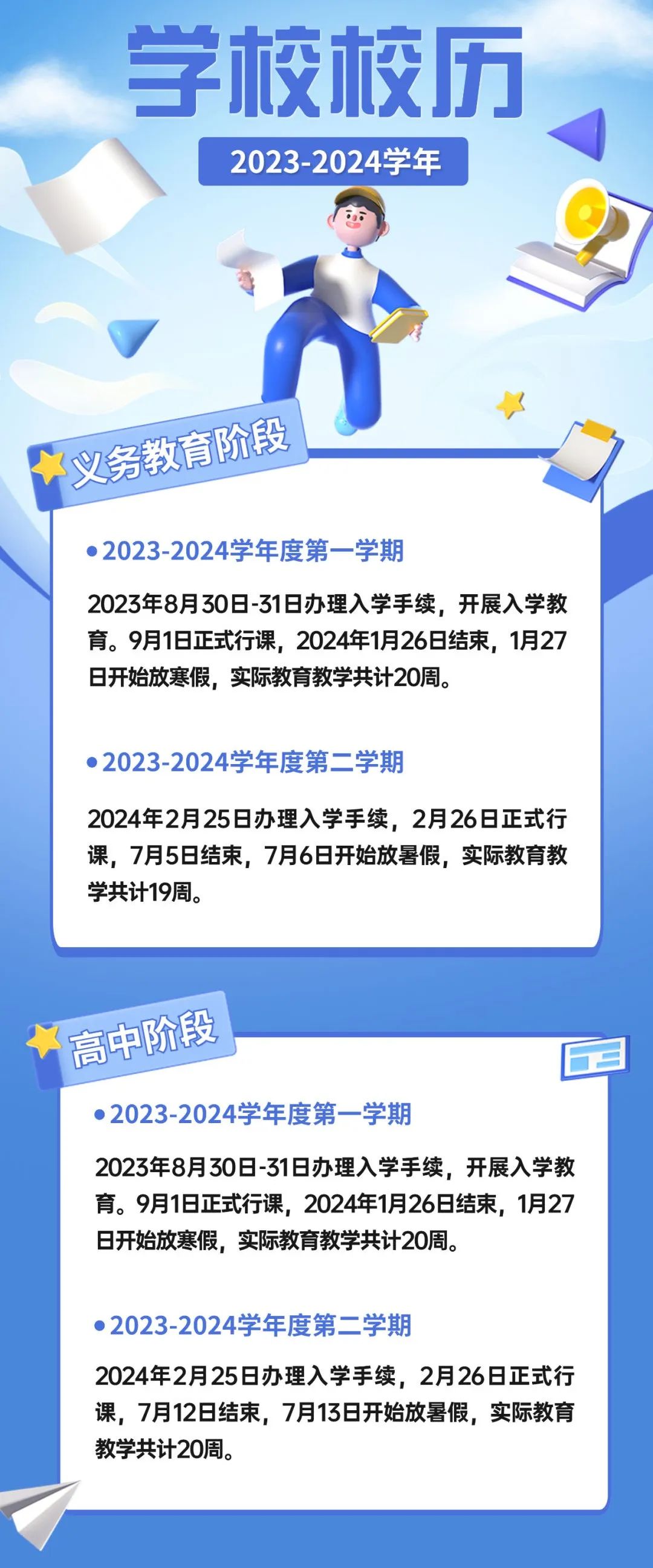 小学、初中、普高、中职(技工)学校定于2024年7月4日学期结束,7月5日放假。