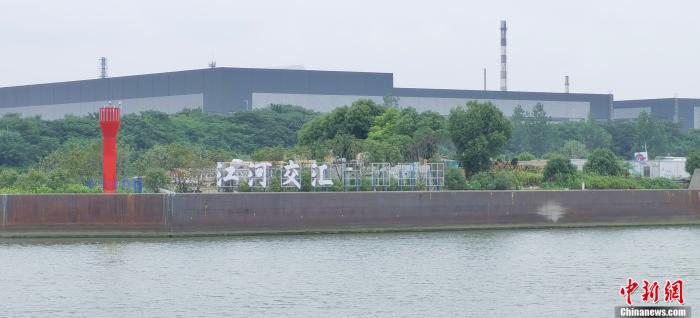 图为谏壁船闸附近“江河交汇”标识。 郎朗 摄