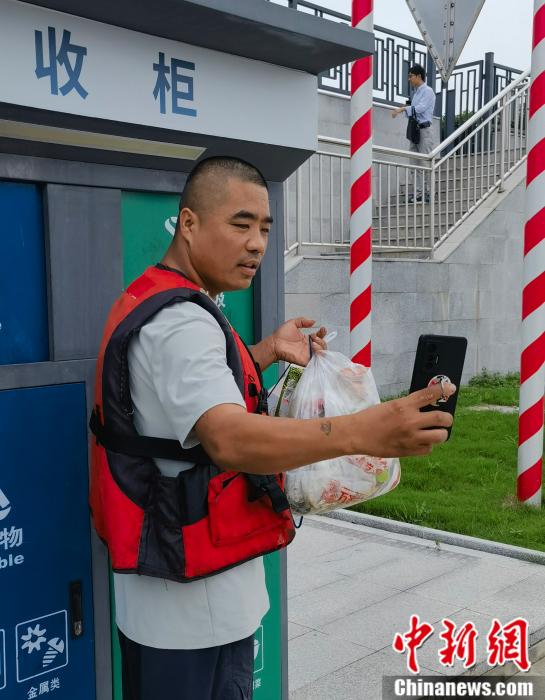 图为张船长上岸处理生活垃圾。郎朗 摄