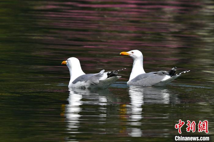 3月23日,浙江杭州,一对织女银鸥在西湖湖面上“私语”。陆建利 摄