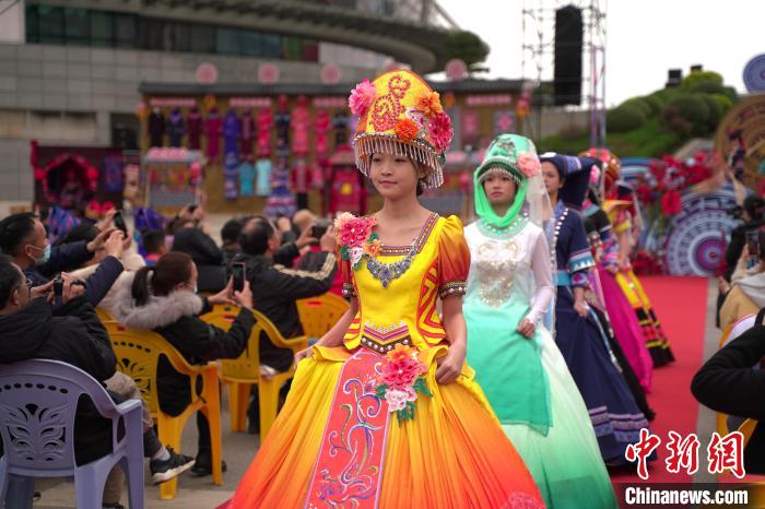 图为演员们身着特色服饰走秀。孙文昱 摄