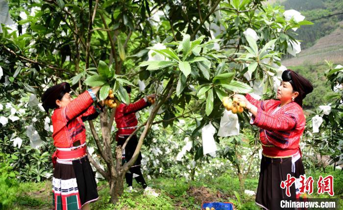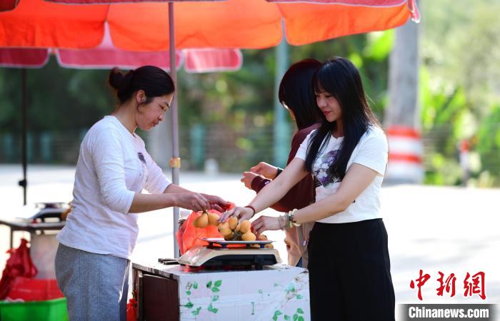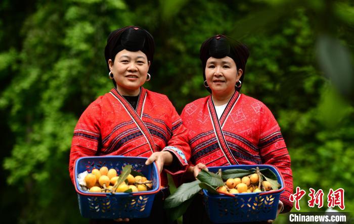 图为4月16日,在广西桂林市龙胜各族自治县泗水乡,游客在选购枇杷。潘志祥 摄