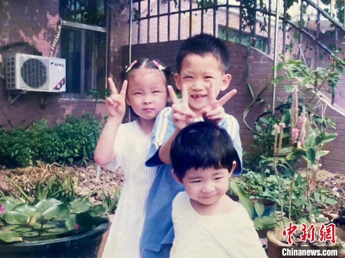 俞佳伟(左二)自小随家人往返海峡两岸。图为他小时候和家人在深圳生活的照片。受访者供图