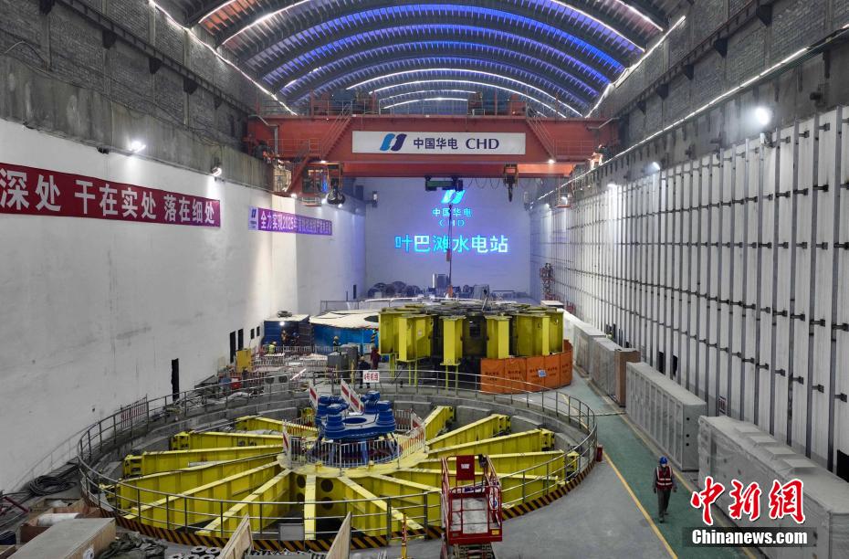 7月7日,航拍叶巴滩水电站4号机组盘车。叶巴滩水电站地处四川省白玉县与西藏自治区贡觉县交界处的金沙江上游,总装机容量224万千瓦,最大坝高217米,正常蓄水位2889米,是中国在建海拔最高双曲拱坝电站。(无人机照片)中新社记者 王磊 摄
