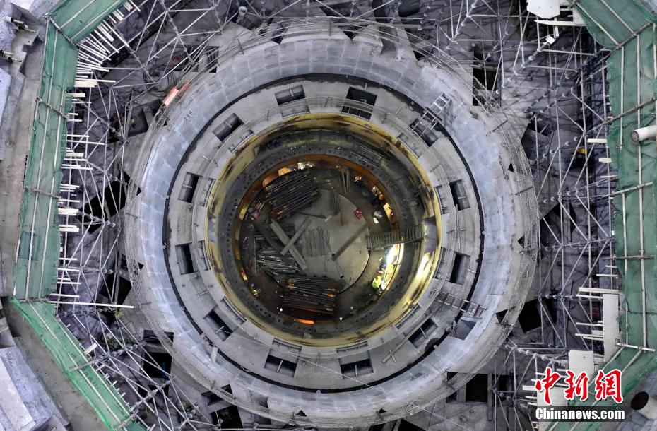 7月7日,航拍叶巴滩水电站2号机组蜗壳内部支撑拆除。叶巴滩水电站地处四川省白玉县与西藏自治区贡觉县交界处的金沙江上游,总装机容量224万千瓦,最大坝高217米,正常蓄水位2889米,是中国在建海拔最高双曲拱坝电站。(无人机照片) 中新社记者 王磊 摄