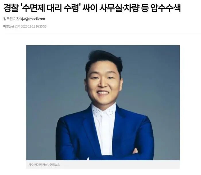 据多家韩媒11日报道,韩国警方已针对歌手“鸟叔”PSY(本名朴载相)涉嫌违规开具安眠药处方及让人代领药物一事展开强制调查。首尔西大门警察署近日对PSY所属公司和车辆进行了扣押搜查。