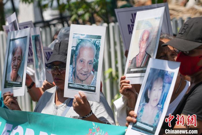 资料图:2017年1月12日,菲律宾多个民间团体在日本驻菲大使馆前举行集会抗议活动,要求日本政府向慰安妇受害者正式道歉、赔偿。图为4名菲籍慰安妇受害者参加当天抗议活动。中新社记者 张明 摄