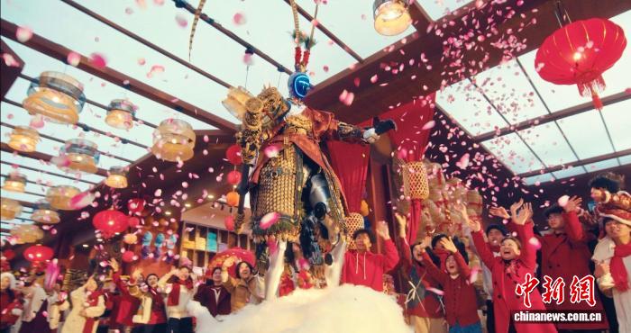 中新网义乌2月17日电(董易鑫)一扇巨型中式窗户矗立于充满科技感的浙江义乌全球数贸中心,舞台向前延展,两侧装饰如潮涌浪花般,铺陈出“勇立潮头”的意象……