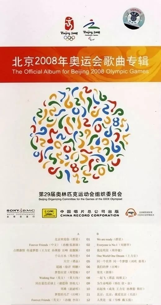 百天盛典当天,《北京2008年奥运会歌曲专辑》问世,该张专辑收录了在奥运征歌活动中脱颖而出的24首获奖作品。其中,当红歌手周杰伦与词作者方文山再度联手,谱写了一曲《千山万水》;成龙、王力宏、孙燕姿、韩红联袂献唱《站起来》;刘欢、那英合唱了《同一个世界,同一个梦想》……一众经典曲目里,你一定可以找到自己会唱的那首歌。
