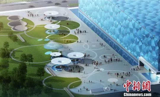 资料图:图为改造后的“冰立方”外观效果图。图片来源:国家游泳中心