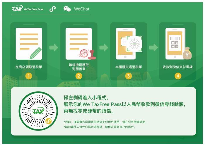 在首都机场成功上线后,“We TaxFree Pass”小程序将在北京大兴机场亮相,方便境外旅客离开内地时完成退税。退税小程序截图