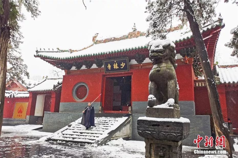 资料图:1月7日,大雪覆盖嵩山少林寺,宛如一幅古老画卷。岳龙 摄