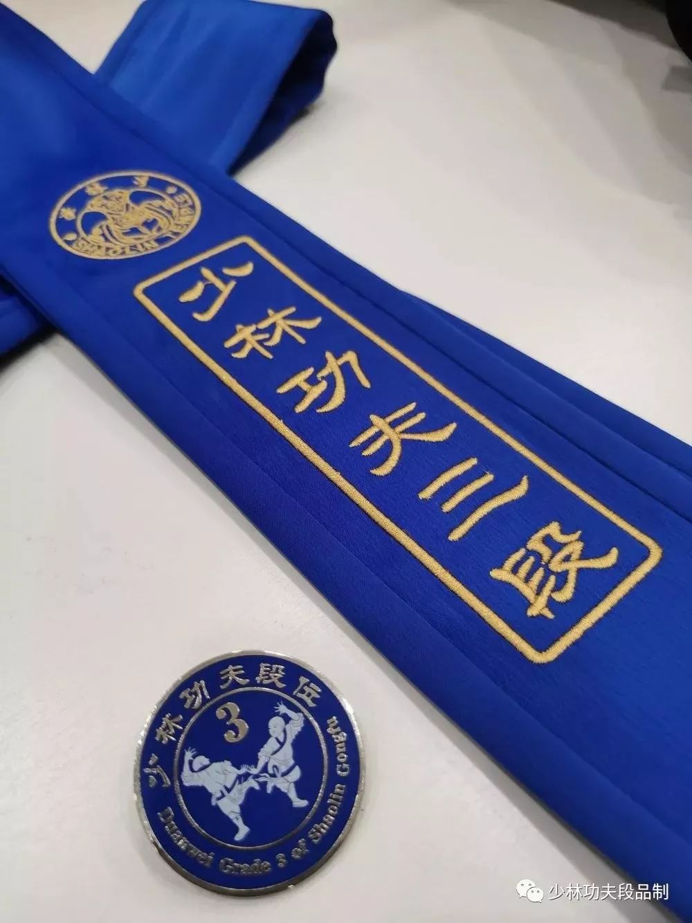 少林功夫段品制三段腰带及徽章。图片来源:微信公众号“少林功夫段品制”