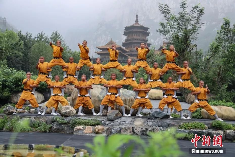 资料图:2019年8月,少林小子们摆出少林罗汉阵。中新社记者 王中举 摄