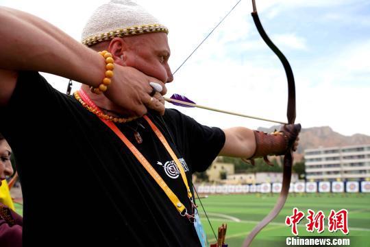 图为选手拉弓射箭。 张添福 摄
