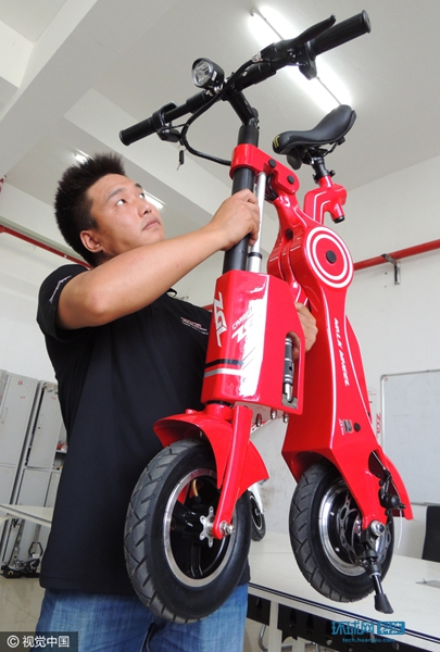 近年来,公司一直探索碳纤维在体育、交通、文化、汽车等领域的应用。在原有碳纤维自行车成熟产品的基础上,通过半年多时间的努力,成功研发出碳纤维电子驱动车。“这辆电子驱动车的车架采用了全碳纤维材料和先进的成型工艺,车身轻便,即使是女性也可以轻松搬运。而自动折叠设计理念使得车身更易折叠且更加小巧,便于携带,无论是乘坐公交、地铁,还是进入电梯,甚至带着逛商场都不成问题。”连云港神鹰碳纤维自行车股份有限公司董事长张斯纬介绍说。