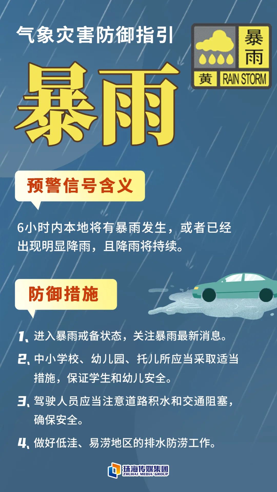 注意防御!珠海全市暴雨黄色和雷电预警生效