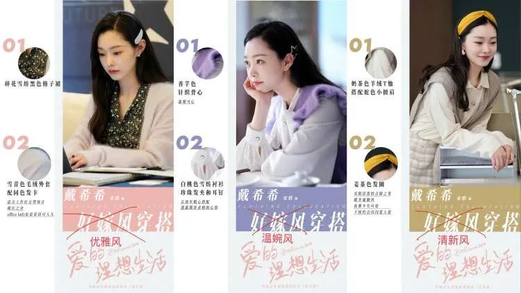 她晒出了一组剧中角色的造型图,图片中写着“好嫁风穿搭”,宣传文案中也突出了“好嫁风”。
