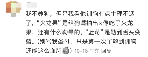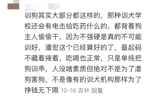 但也有人反驳,潘宏的训犬方式已经算温和的了,训犬学校的方式甚至更加过分