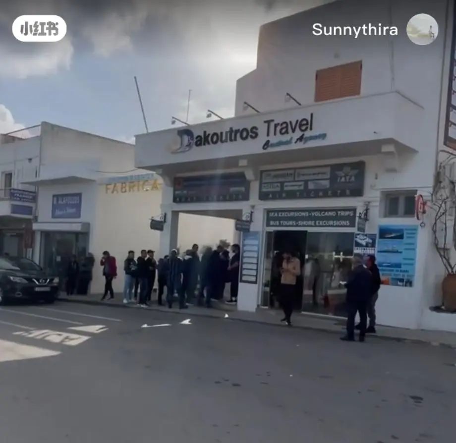孙先生在北京时间2月5日凌晨1点在社交平台分享了当地岛民撤离的视频,视频中可以看到圣托里尼当地旅游公司Dakoutros Travel的门口,撤离的人群排起了长队。随后他2月5日下午4点50分更新的视频内容,则是当地空无一人的街区。
