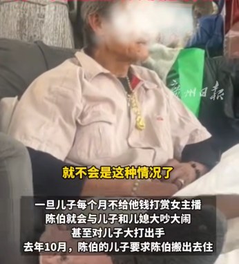 广州某小区73岁的陈伯沉迷打赏女主播,7年打赏超10万元,花光退休金和“救命钱”,称“女主播们太辛苦,想帮助她们”,被儿子赶出家门后捡废品继续打赏。